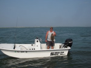 The secret this year to catching keeper flounder consistently is locating small pods of fish. This year for whatever reason, the flounder did not show up in any numbers in the back bays of Cape MayCounty, NJ. If you are here on vacation or limited on time, it would be worth hiring a fishing guide. Make sure you see pictures of keeper flounder from this year before you part with your money. Fishing guides and Charter fishing operations are far from equal. Striper fishing on the Back Bay flats during the spring and summers is a lot of fun, again worth hiring a guide. One of the top guides for stripers on light tackle and the fly is Cape May Ray http://www.flyfishingcapemay.com/ The water temperature was 72.5, water clarity was a 7. I caught three Keeper flounder and lost a giant at the net. CJ a long time summer Avalon resident was the only other boat in the area, he had two keepers to 23”. I fished for one hour.