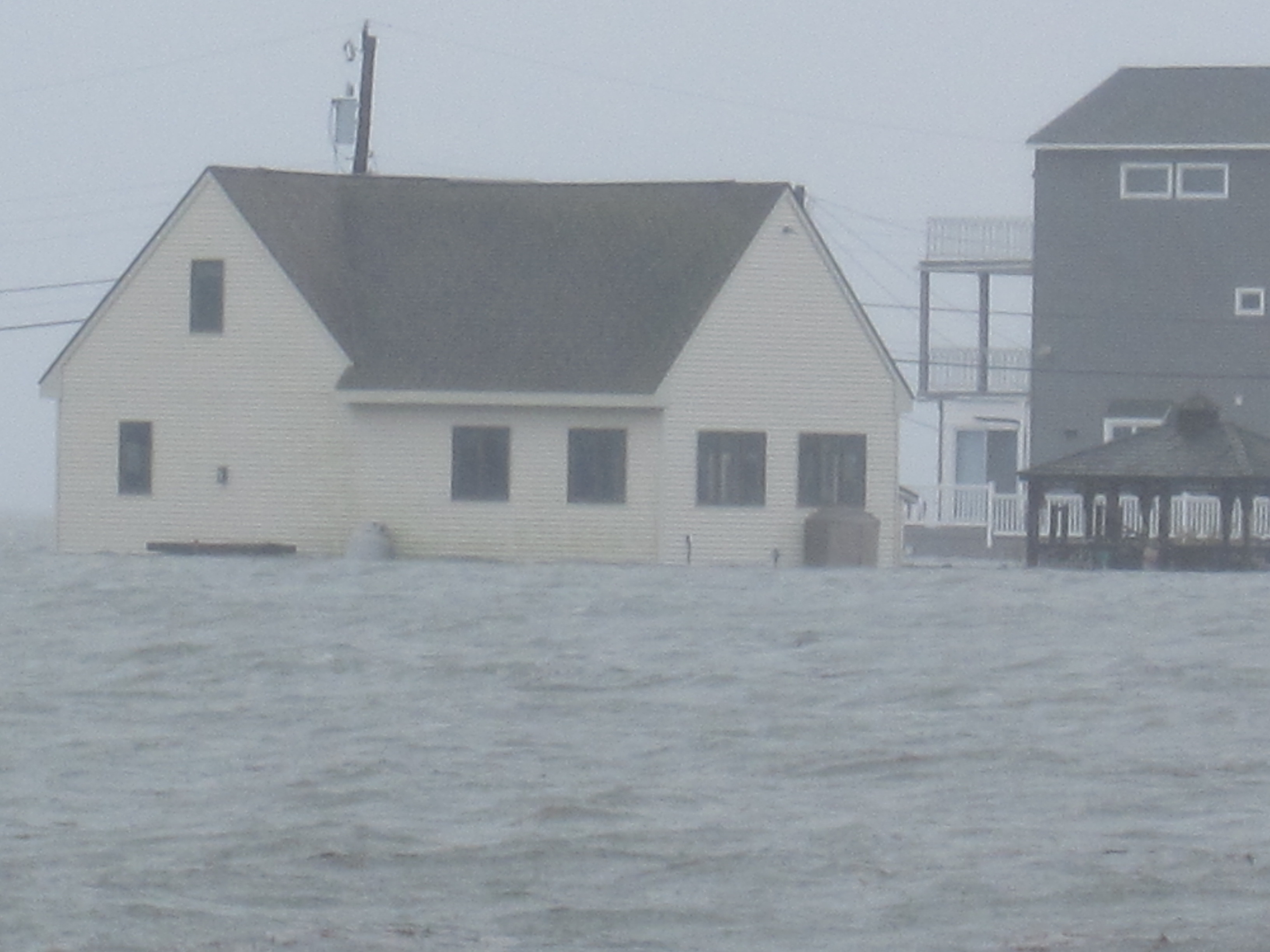 Maggie, the pictures of the flood waters ,were taken on the AM tide, the day Sandy hit. The tide had receded some at the time the pictures were taken. I have a few more pictures of the flood waters on my cell phone, that I could send you via text. The water was about 3′ deep at the spot I was standing when I took the pictures.