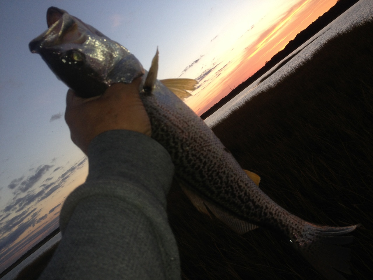 A 25″ weakfish and a crisp fall sunset.                                      9-23-2014