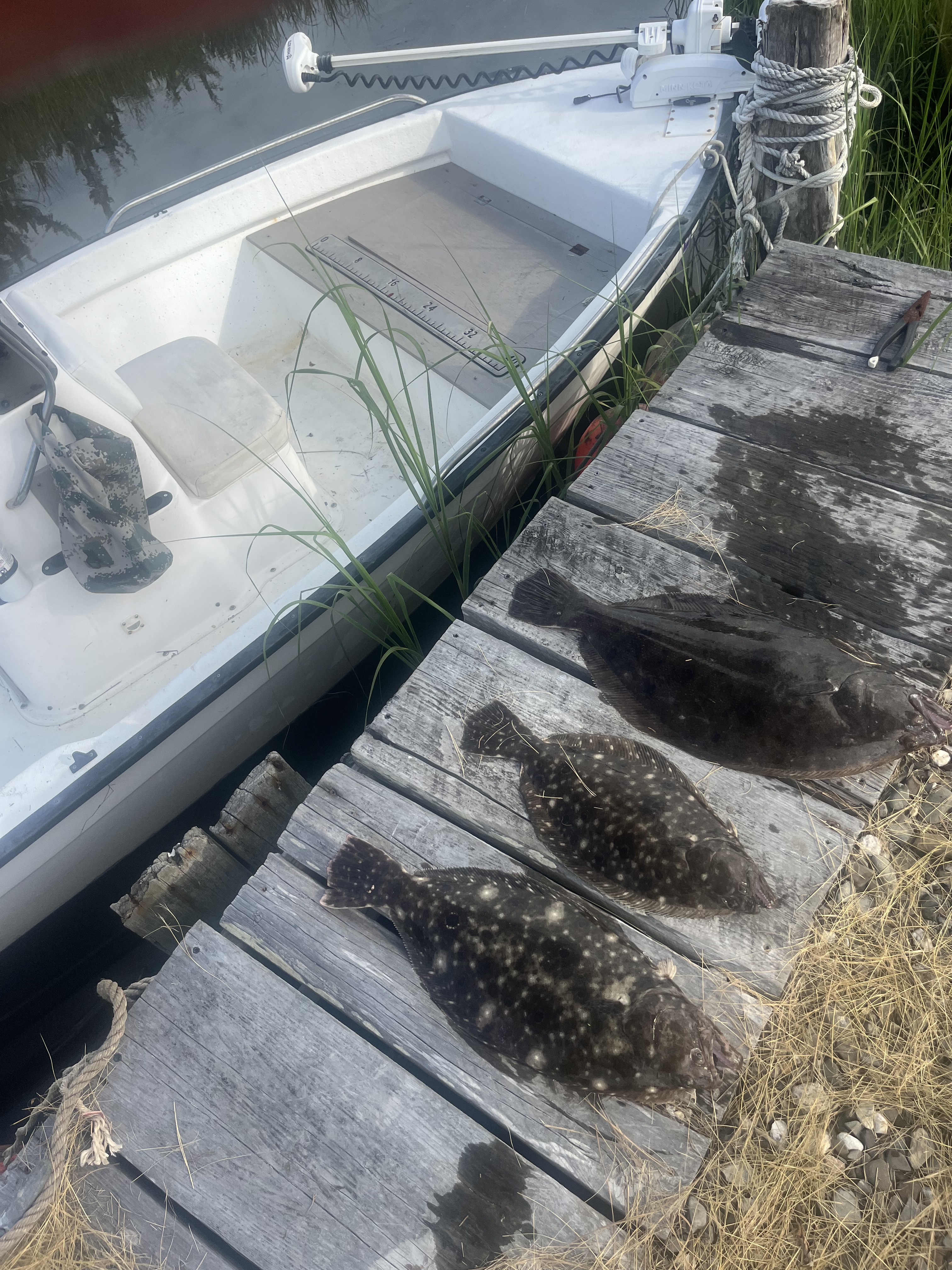 I limited out on this July trip, it was a few days before the famous King of the Cape Flounder tournament. The largest was 24.5″ and 6.1lbs. I spent 2 hours on the water this trip fishing. The fish were all caught on artificial lures. However, it takes time and instruction to develop good lure presentation, which is a prerequisite to catching fish with artificial lures. Natural baits, presented on a pre-rigged setup, which can be found in local tackle shops, will produce the best results for most anglers.