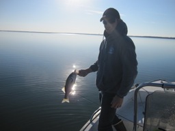 Beautiful fall day, toped off with 17 stripers and one spec.. However, it looks like the speckled trout are not going to show in any numbers again this year. Only about 10 specs total have been caught to date, this season.George S.Cape MayCounty’s top spec fisherman has not caught a spec yet this year. He is concerned with the spec population. George has averaged between 50-100Cape May County speckled sea trout per season, over the years. A few years back specs were caught into January, due to unusual warm weather. This may have been the kiss of death for the New Jersey population, as the weather turned extremely cold fast that January. The cold could have killed a large percentage of the spec population, due to the fact they did not have enough time to migrate to warmer waters. Spec fishing in Cape May County has not been the same since that year. There is something special about catching a New Jersey spec. I can catch a boat load of Florida specs, but it is not the same as catching just one, New Jersey spec.