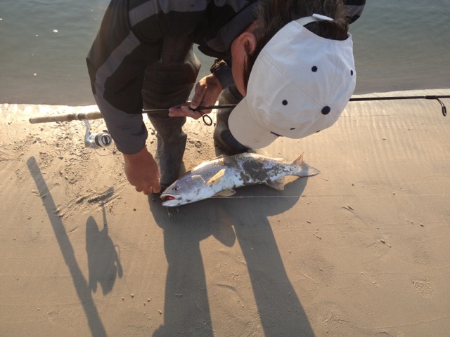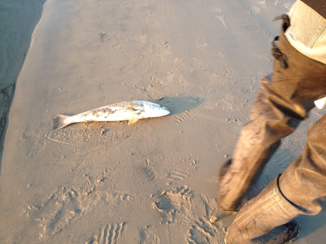 I caught two 20″ keeper back bay flounder today. I fished for 40 minutes. The water temperature at the top of the tide was 63 degrees, 5 -10 SW wind and the water clarity was excellent.