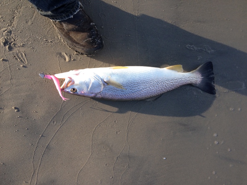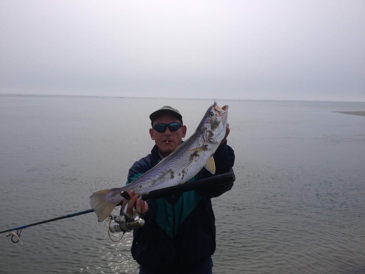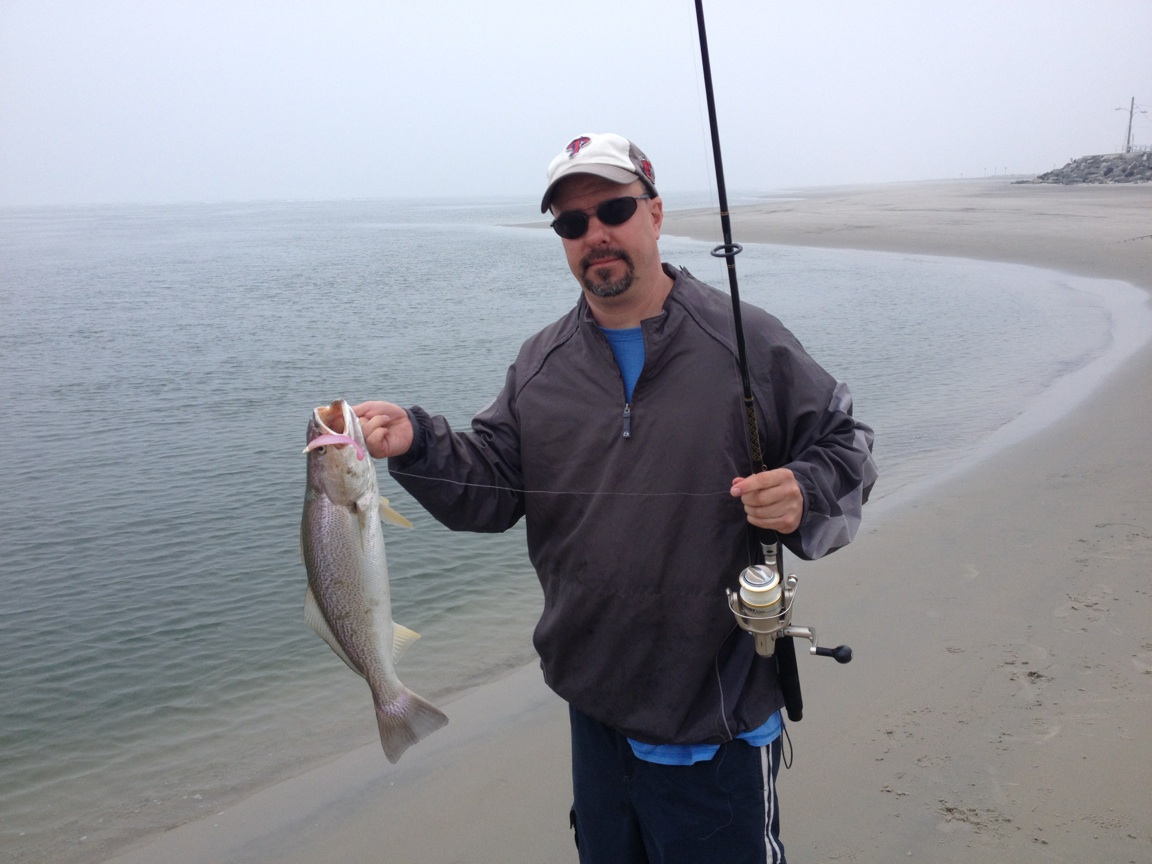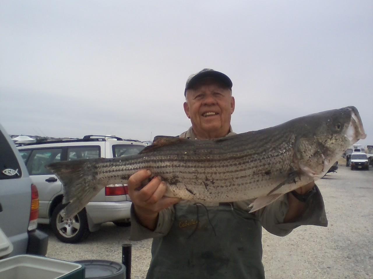 The weakfish bite has slowed due to the spawn. The weakfish could be seen swimming around the structure but they were not interested in any lures. The stripers picked up the slack. Wayne caught a quality short striper on a smoke colored zoom. His first fish of his annual Jersey fishing vacation.